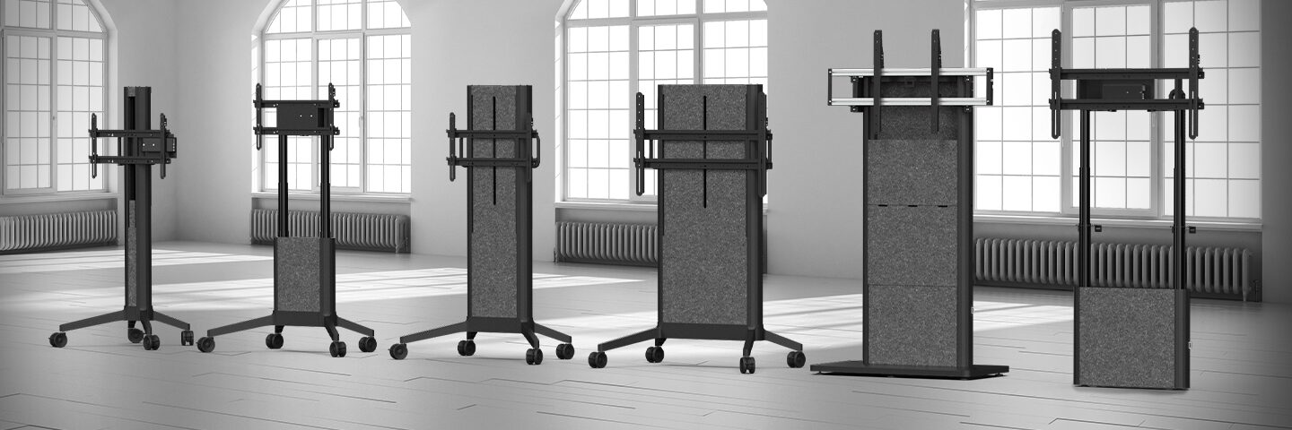 With award-winning functionality and aesthetics, our versatile stands enhance your meeting experience and maximize the potential of your technology. From small to large rooms, mobile to fixed installations, single to dual displays – our solutions adapt to your needs.